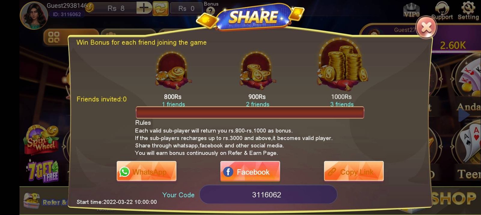 Share your referral link and earn when your friends join. Each referral can give you up to Rs. 1100.