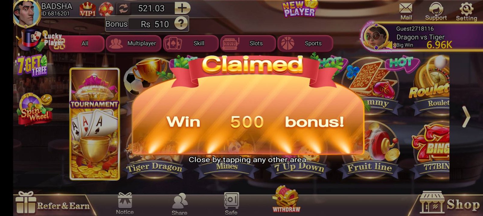 Every time you win a game, the prize goes into your wallet. Whether it’s Teen Patti or a slot game, winning gives you real money.