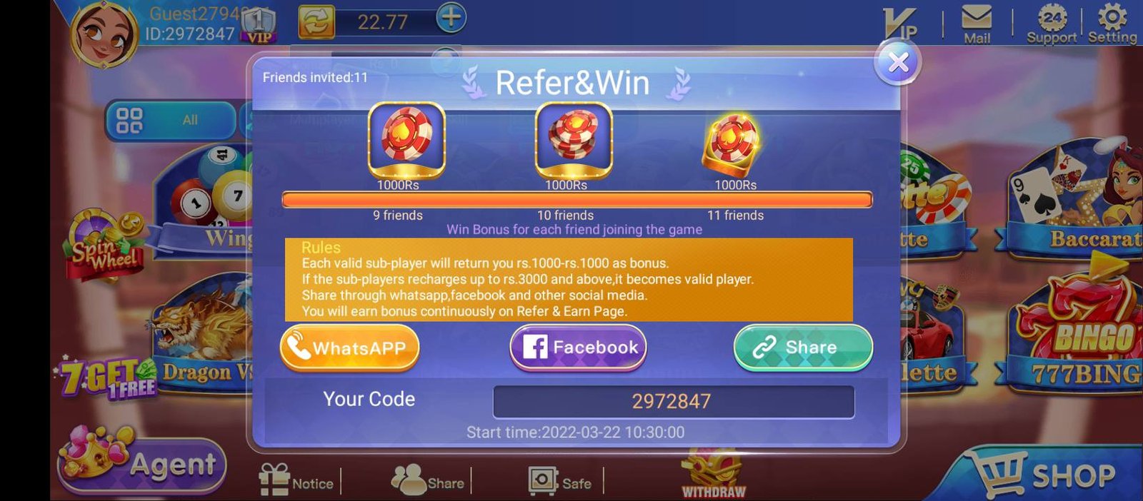 Refer More Friends: Share your referral code on WhatsApp or Facebook.
