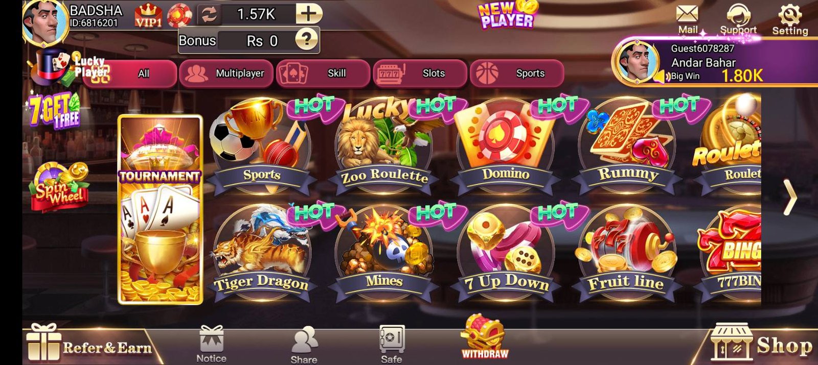 Every time you win a game, the prize goes into your wallet. Whether it’s Teen Patti or a slot game, winning gives you real money.