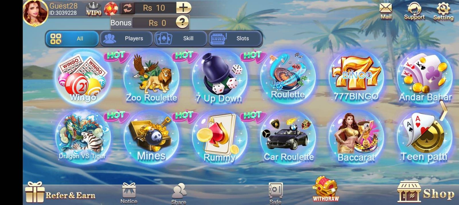 The moment you open 3 Patti Mines, you’ll see a beautifully designed home screen: