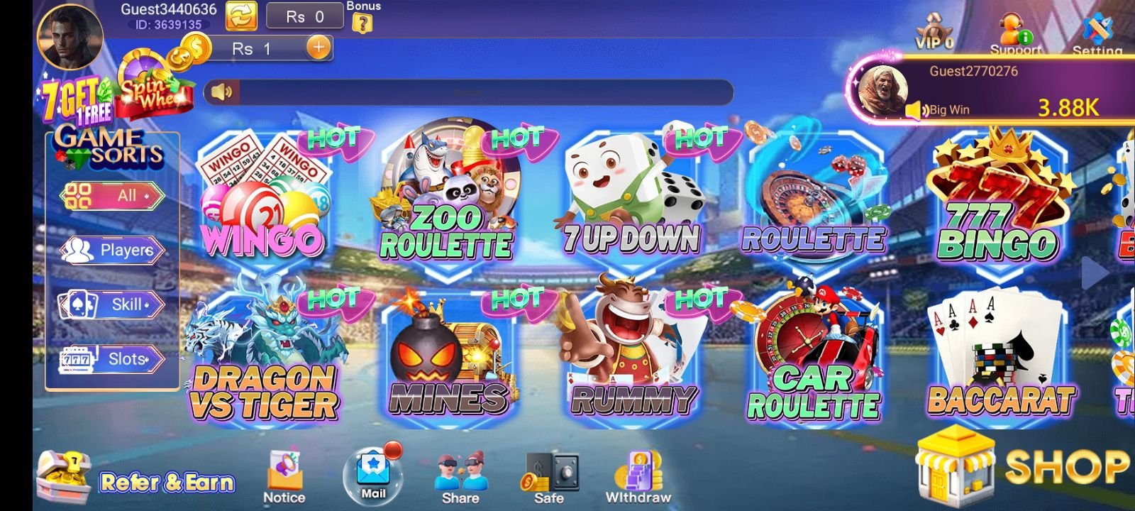Lucky Spin has a wide collection of games divided into different categories. Each category offers a different kind of excitement and chance to win money.